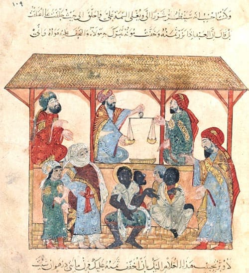 The last and ultimate assimilation of the Arabic miniature painting tradition occurred under the 14th-century Ottoman Empire. Due to the cross-cultural exchanges that were part and parcel of the Silk Road (a centuries-old network of trade routes connecting the East to the West), Italian and Catholic artisans were exposed to and strongly influenced by the illuminated manuscript works making their way to Europe. Some even went to study in ateliers sponsored by Turkish sultans.